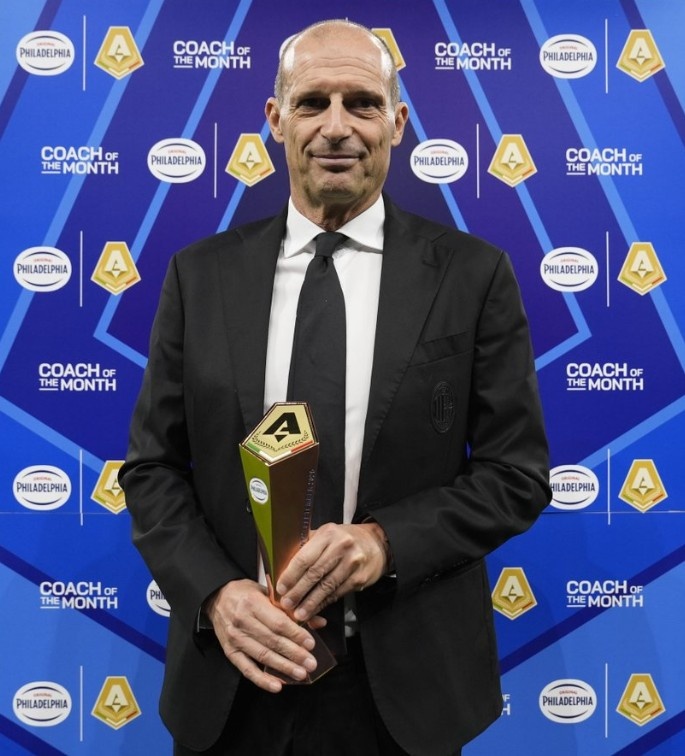 Những bức ảnh chính thức của Serie A cho thấy huấn luyện viên Allegri của Milan đã nhận được danh hiệu Huấn luyện viên của năm vào tháng 9 trước khi Milan thi đấu với Pisa.