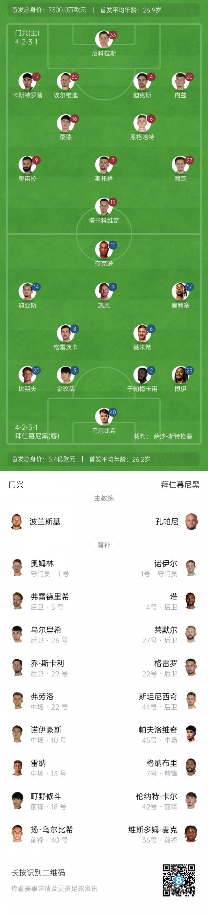 Không đăng lại mà không được phép:ShengWangNews » Trận sân khách của Bayern gặp Borussia Monchenladbach bắt đầu: Kane, Jackson, Bischof xuất phát, Kim Min-jae và Boye thi đấu